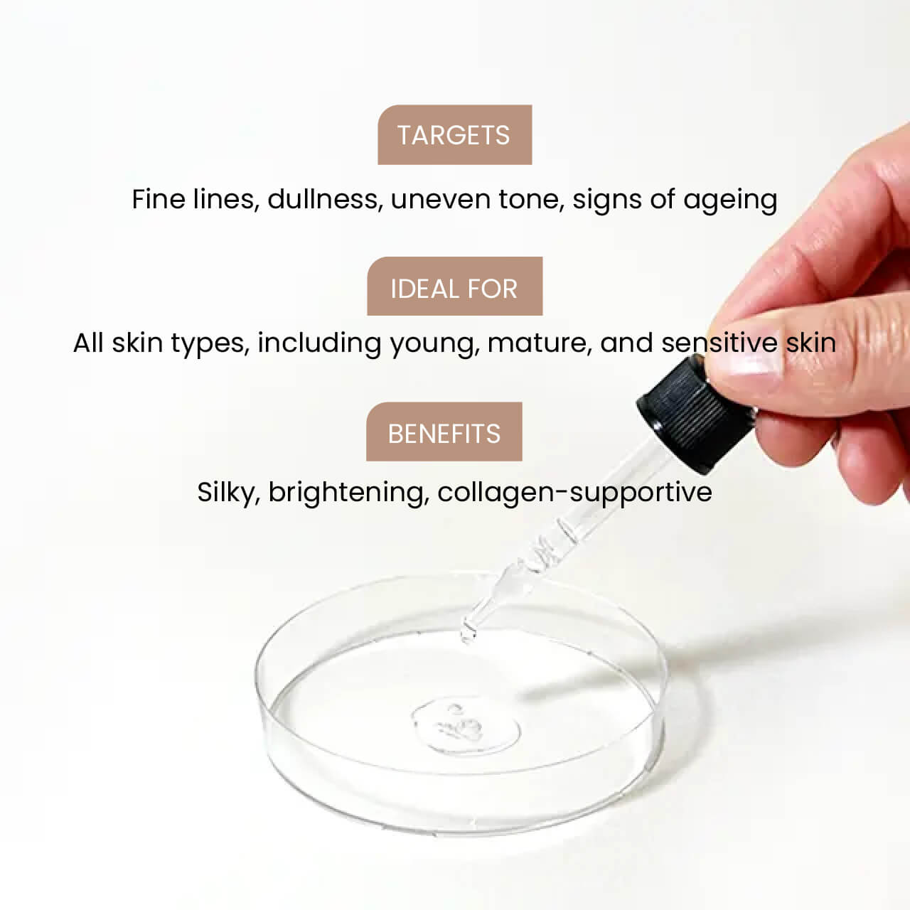 Texture & Feel Silky, featherlight serum with quick-absorbing finish