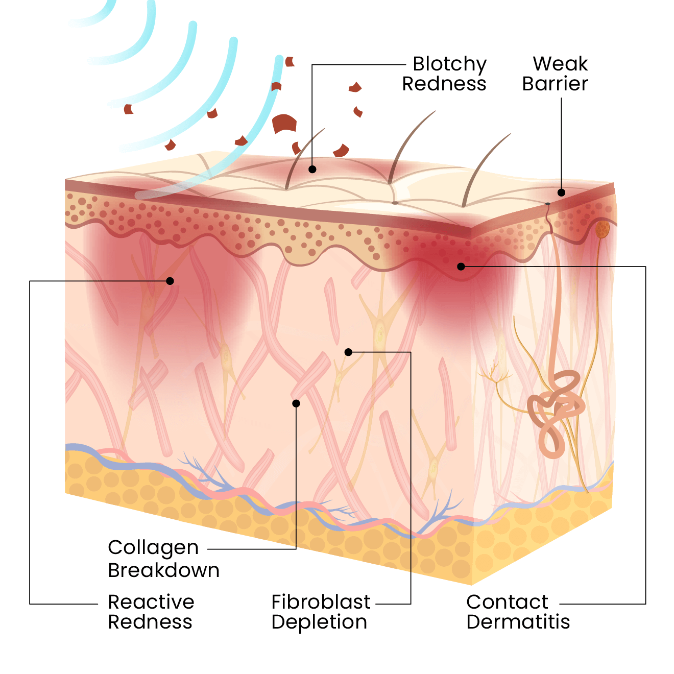 Burning, flaking, or sensitivity from acids, retinoids, sunscreens, or harsh skincare products.