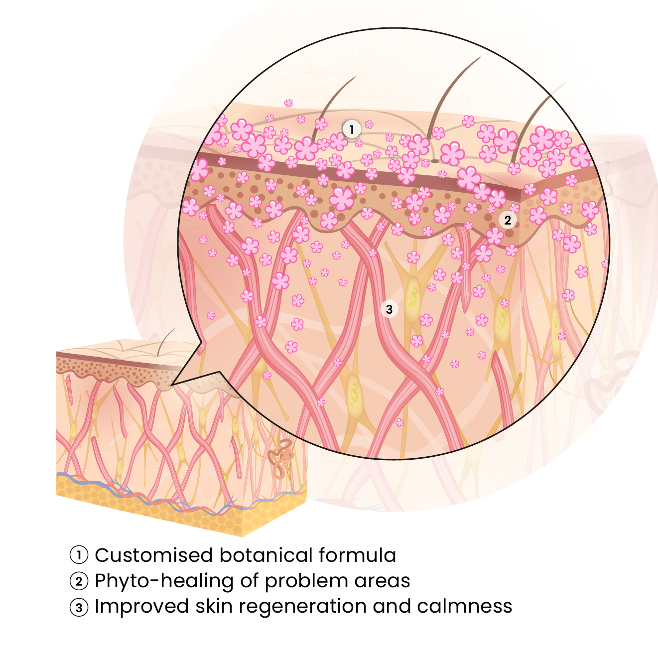 A customised anti-inflammatory botanical mask delivers skin-identical hydrators and lipid-reinforcing actives to relieve discomfort, restore hydration by up to 85%, and strengthen barrier resilience by up to 92%.