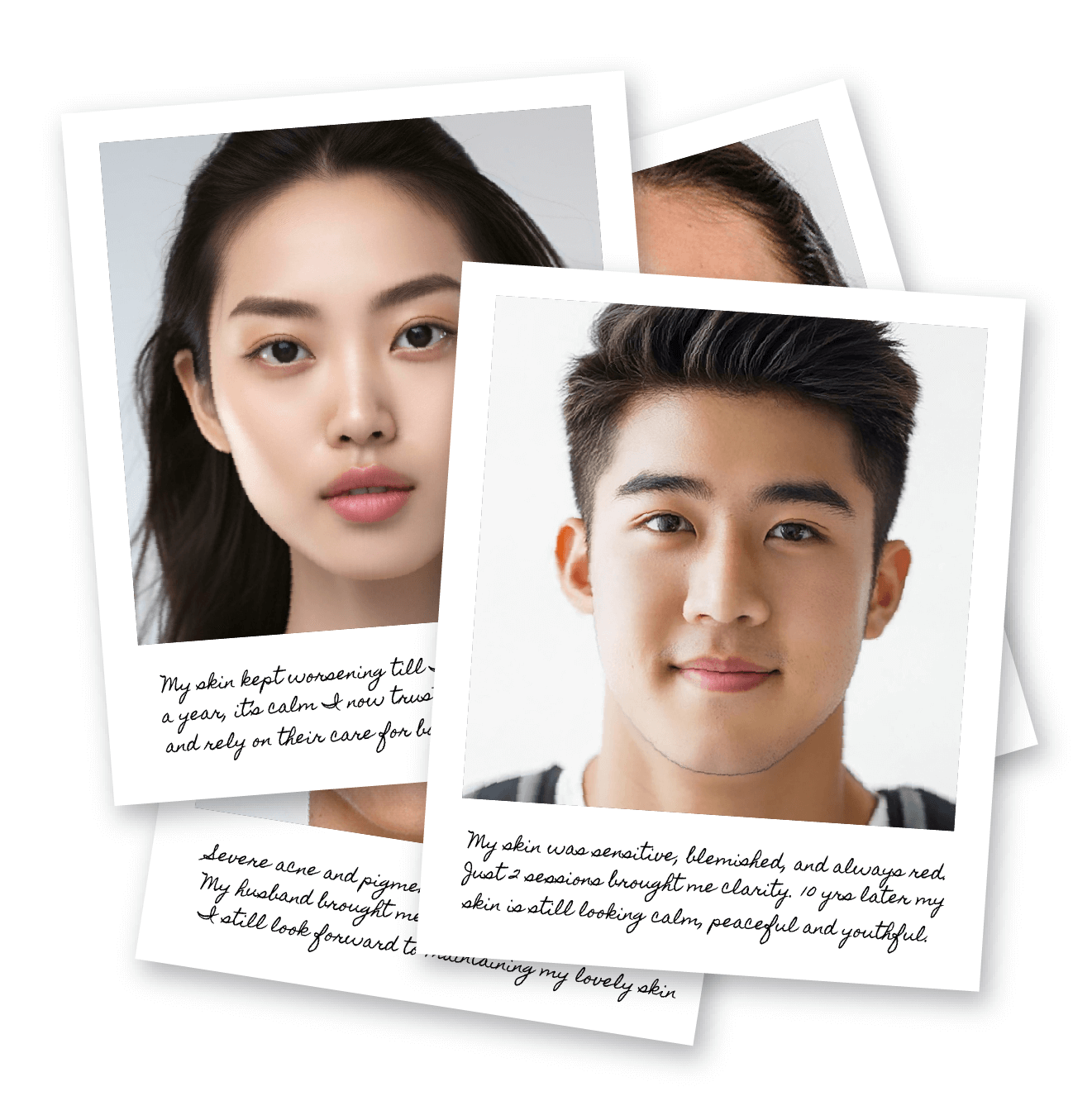 Flare-ups calm faster. Skin looks clearer, feels balanced, and glows with greater resilience in 3 sessions.