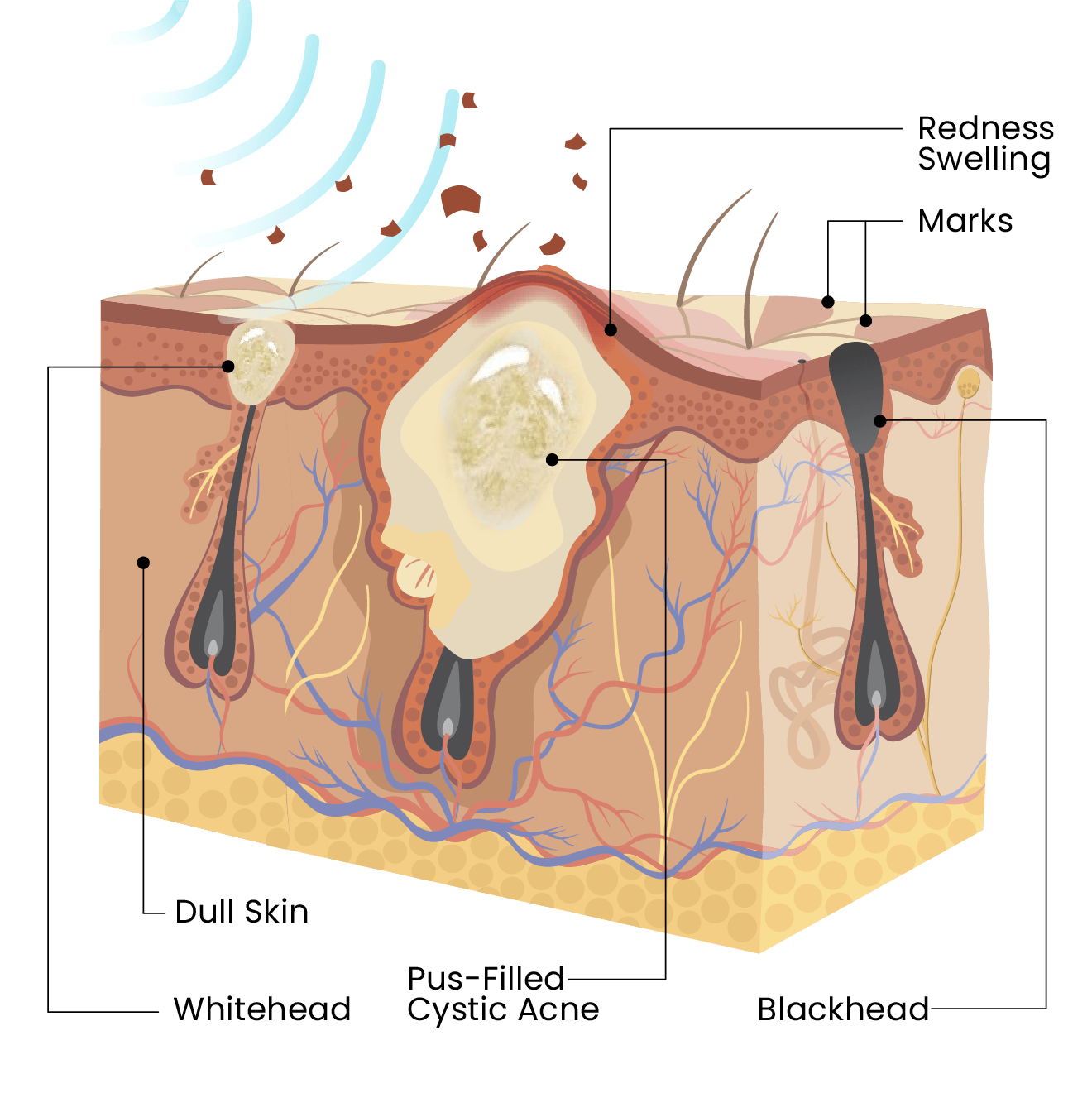 Handog EB et al., “Challenges in the management of acne: Prevention and treatment.” Journal of Clinical and Aesthetic Dermatology 9, no. 1 (2016): 15-24.