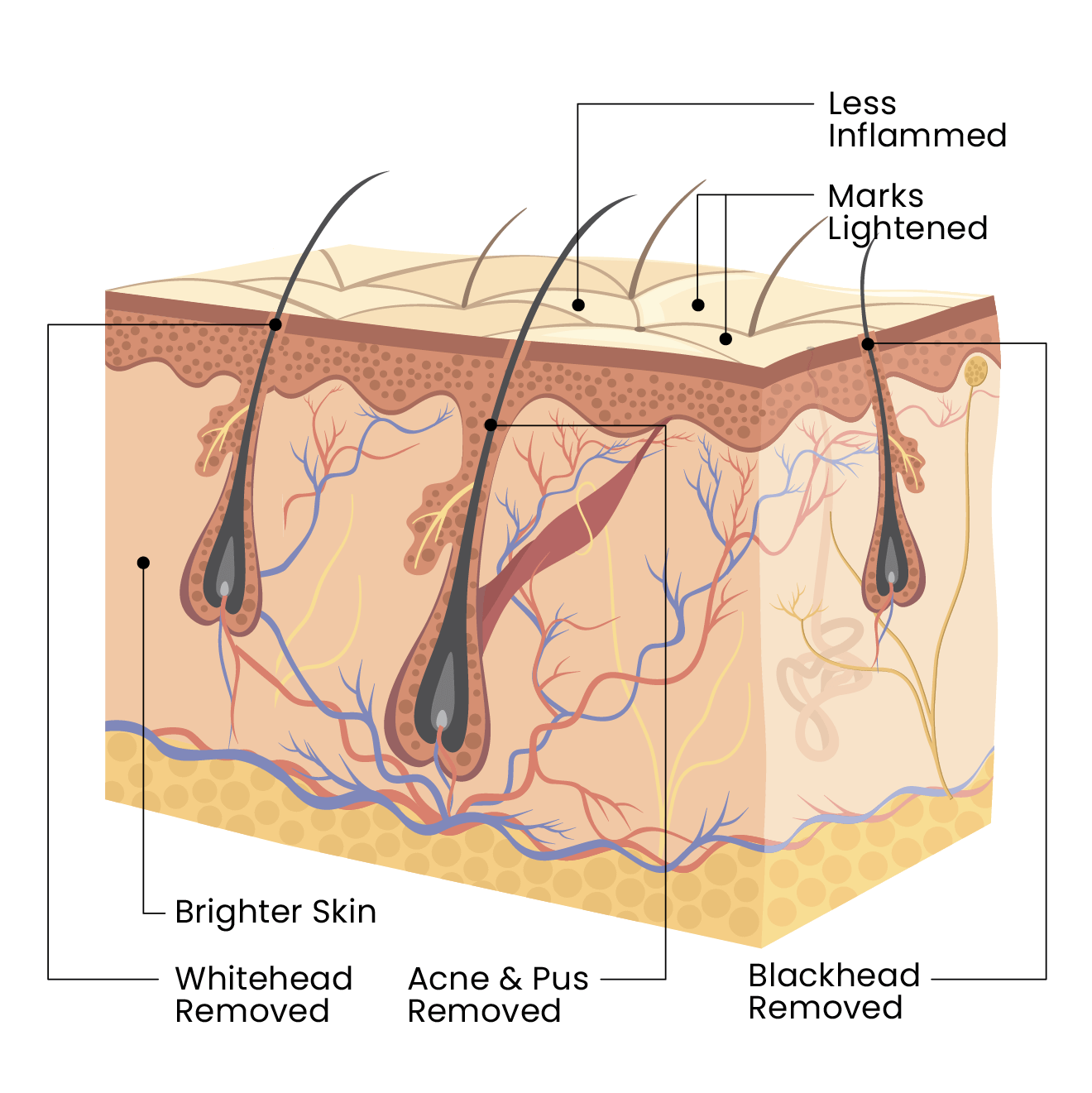 Smoother, brighter, and clearer skin. Refined texture, reduced congestion, and fewer breakouts in 3 sessions.